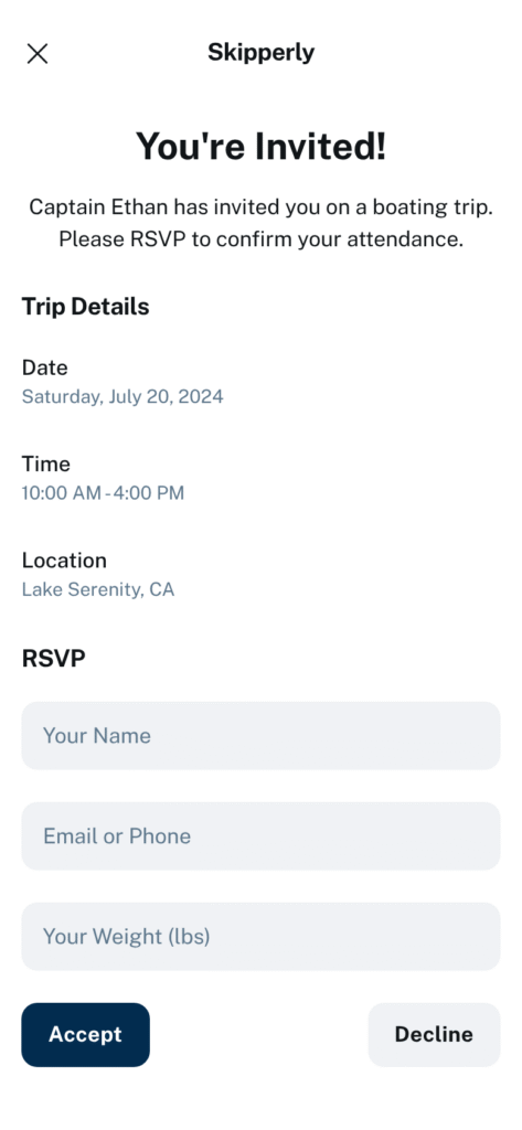 From RSVPs to potlucks to waivers, Skipperly makes hosting smoother so you can focus on fun.